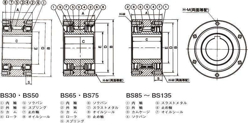 | BS65-50J | 50 | 新JIS | 90 | 85 | 160 | 90 | 140 | 20 | 6-M10×1.5 | 1570 | 340 | 3.92 | 13.0 | BS65TA |