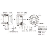 | BR150-LH | 左回転 | 150 | 36×8.4 | 2.0 | 90 | 80 | 400 | 310 | 243 | 243 | 360 | 12-17.5 | 2-M16 | 280 | 5 | 5 | 13.7 | 13.7 | 12.0 | 4.5 | 3.0 | 15.0 | 20 | - | 4-PT1/4 | 33908 | 370 | 1300 | 160 | 0.365 | 58.0 |