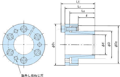 ・内径と外径との比が小さく、発生面圧を抑えた設計にしていますので、ボス外径を小さくできます。