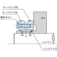 ・インナリング、テーパリングA、テーパリングBの3つの部品と締付ボルトで構成されたシンプルな構造です。