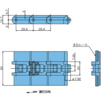 ・プレート幅50mmでチェーンピッチ25.4mmの小形搬送用チェーン。小物の搬送に適します。