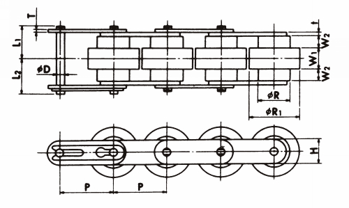 | シリーズ | 仕様 | 大ローラ 仕様 | 小ローラ 仕様 | R | R1 | W | W2 | t | T | H | D | L1 | L2 | |||||