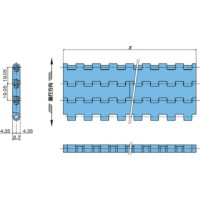 ・チェーン構造を備えたプラスチック製モジュールリンクをレンガ状に組合わせることにより、ベルト状のワイドな搬送面とチェーンとスプロケットの噛みわせによる確実な駆動を実現したプラスモジュラーチェーンです。
