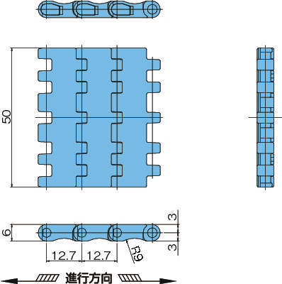 ・チェーンピッチ=12.7mmの小さなピッチで、軽量な小容器搬送に最適です。