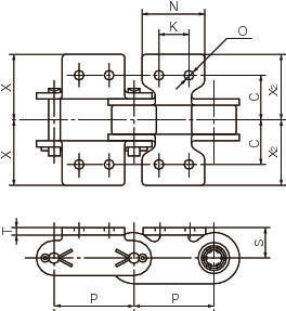 | 形式 | 間隔 | 厚さ T | 幅 h | 幅 H | ピン径 D | L1 | L2 | S | C | X | X2 | N | K | O | ||||||||||