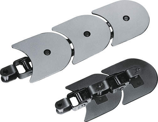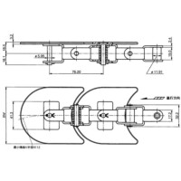 ・垂直方向へも屈曲も可能な水平搬送用チェーン。
