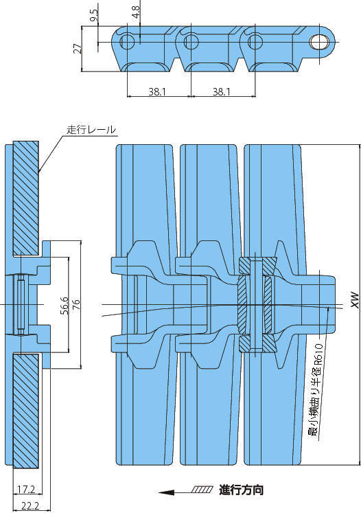 | TPUS3048-T-LFB | リンク | 低摩擦・耐摩耗 | ブラウン | ステンレスピン | 304.8 | 38.1 | 613 | 2.16 | 80 | 50 | -20~(65)80 | 3.41 |