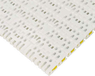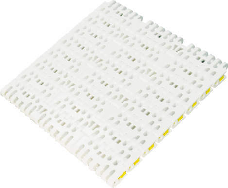 ・チェーン構造を備えたプラスチック製モージュールリンクをレンガ状に組合わせることにより、ベルト状のワイドな搬送面とチェーンとスプロケットの噛みわせによる確実な駆動を実現したプラスモジュラーです。