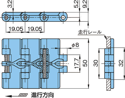 | TTPM500-BL | リンク | 普通 | スカイブルー | ステンレスピン | 50 | 19.05 | 0.29 | 100 | 50 | -20~80 | 0.4 |