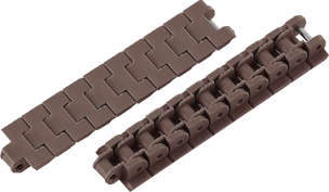 ・トッププレートを備えたプラブロックチェーン。小物の搬送に最適です。