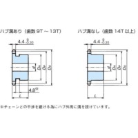 ・歯部の強度と耐摩耗寿命向上を必要とする場合、歯先硬化仕様のスプロケットを推奨します。