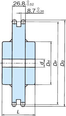 ・歯部の強度と耐摩耗寿命向上を必要とする場合、歯先硬化仕様のスプロケットを推奨します。