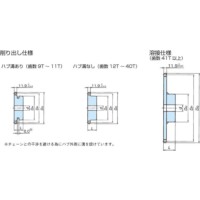 | 材質・仕様 | 歯数40T以下:機械構造用炭素鋼材・削り出し仕様 歯数41T以上:機械構造用炭素鋼材(歯形部) 一般構造用圧延鋼材(ハブ)・溶接仕様 |