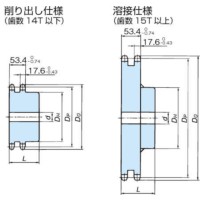 | 材質・仕様 | 【標準下穴品】 歯数14T以下:機械構造用炭素鋼材・削り出し仕様 歯数15T以上35T以下:機械構造用炭素鋼材(歯形部) 一般構造用圧延鋼材(ハブ)・溶接仕様 歯数36T以上:一般構造用圧延鋼材・溶接仕様 【ストロング下穴品】 歯数14T以下:機械構造用炭素鋼材・削り出し仕様 歯数15T以上35T以下:機械構造用炭素鋼材(歯形部) 一般構造用圧延鋼材(ハブ)・溶接仕様 |
