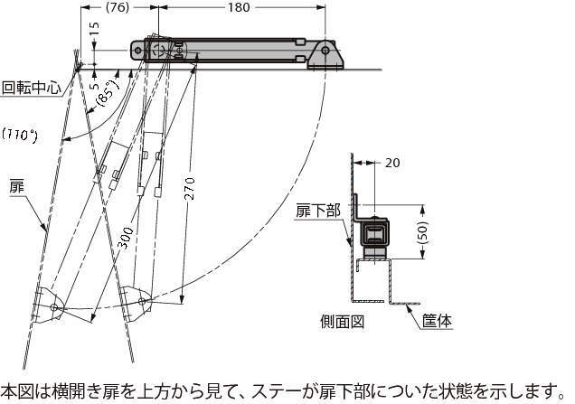 ・横開き扉下部に水平に取り付けて使用します。(ステーの縦使いはできません)