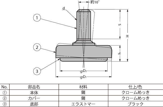 | 材料・仕上(カバー) | 鋼(SPCC)、クロムめっき |