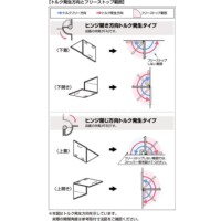 ・一方向のみにトルクが発生するトルク裏蝶番です。逆方向トルクが発生しないため、扉などをスムーズに操作できます。