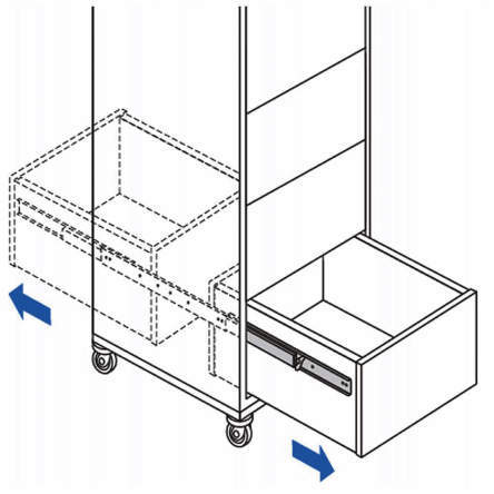 ・高さが57.3mmの両トラベル仕様の鋼製スライドレールです。