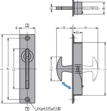 | 型式 | L | L1 | L2 | L3 | H | H1 | H2 | J | B | B1 | t | P |