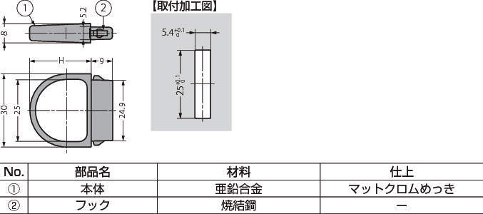 | 材料・仕上 | 亜鉛合金(ZDC)、マットクロムめっき |