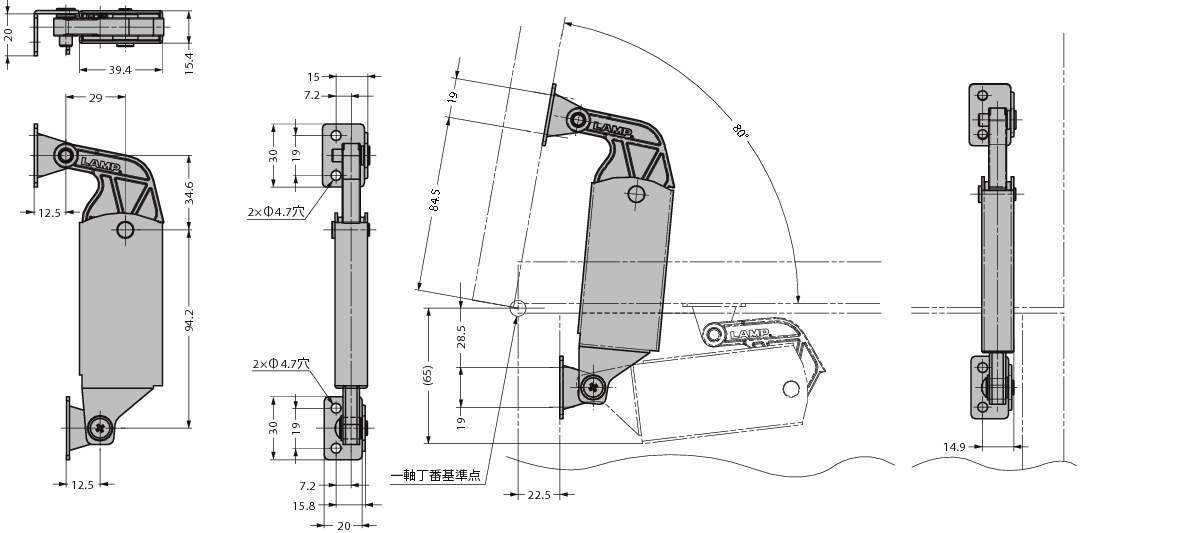 ・上蓋に対し、開き角度以上にあおりを加えないように別途ストッパーなどを設けてください。