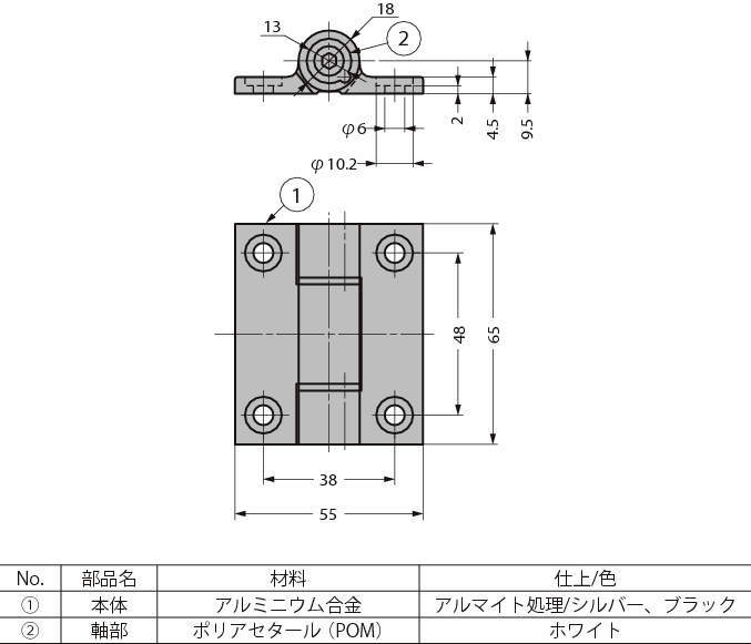 | 材料・仕上・色(本体) | アルミニウム合金・アルマイト処理・シルバー、ブラック |