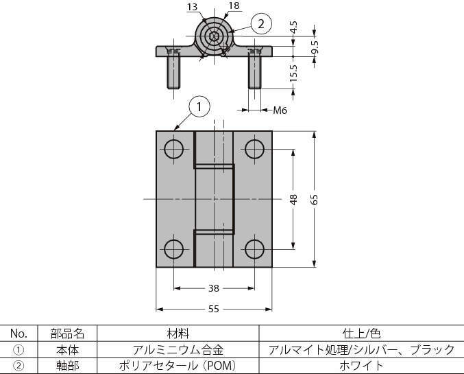 ・六角棒スパナでトルク調整ができます。 ・垂直方向でも水平方向でも使用できます。 ・ヒンジ本体はアルミ合金製で軽量です。