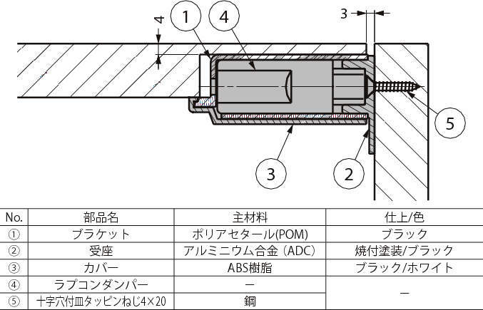 | 主材料・色(ブラケット) | ポリアセタール(POM)・ブラック |