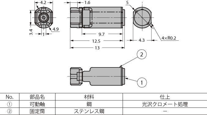| 材料・仕上(可動軸) | 鋼・光沢クロメート処理 |