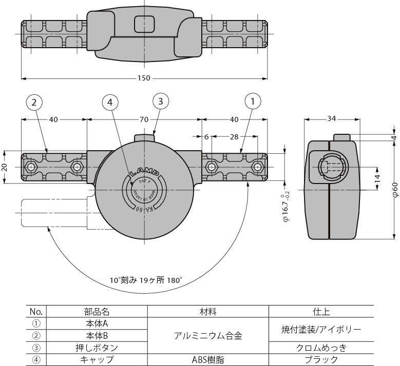 | 材料・仕上(押しボタン) | アルミニウム合金・クロムめっき |