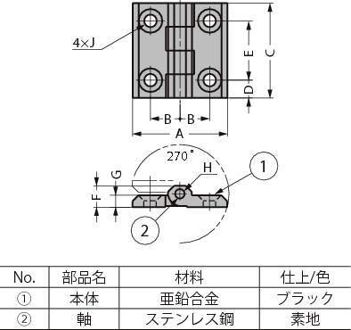 | 218-9004 | 40 | 12.5 | 40 | 7.5 | 25 | 9 | 5 | 4 | φ5.3穴、皿(M5用皿穴) |