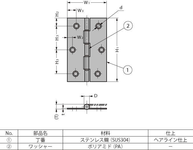 | 材料・仕上(丁番) | ステンレス鋼(SUS304)・ヘアライン仕上 |