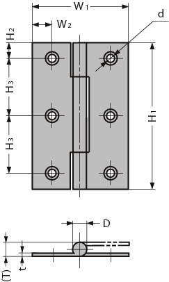 | 型式 | H1 | H2 | H3 | W1 | W2 | D | t | T | d | 管数 | 取付穴数 | 付属ねじ |