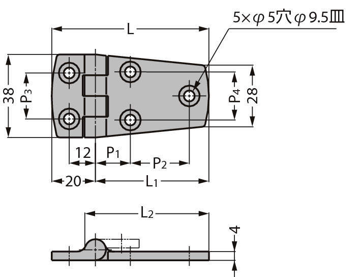 | 型式 | L | L1 | L2 | P1 | P2 | P3 | P4 | 扉幅 | 扉高さ | 扉厚 |