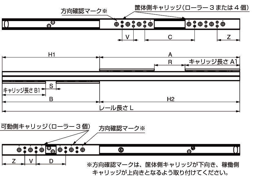 ・ダブルボールベアリング内蔵のローラー式スライドレールです。