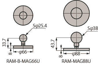 ・ボールはφ25.4mm(Bサイズ)があり、サイズに合ったRAM本体があります。