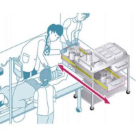 ・長いコンベアを迂回せずに、物の受け渡しがしやすくなります。