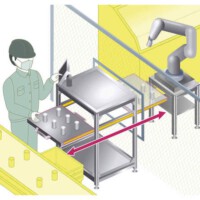 ・安全柵越しにワークの受け渡しができ、ロボットと人の作業スペースを分けやすくなります。