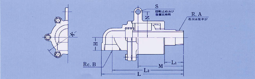 型式 ネジ方向 呼称寸法 A B H K L1 L2 L M N S 質量