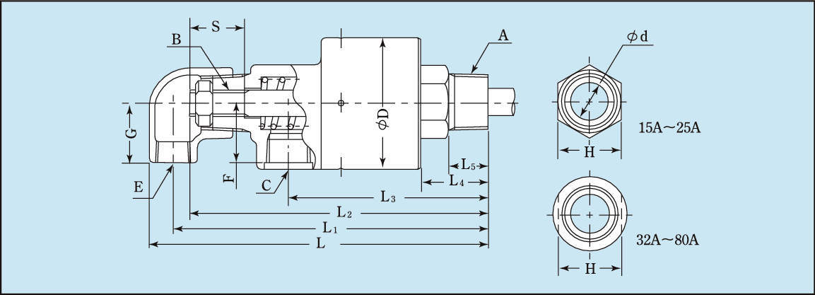 型式番号 A B C E F G D L L1 L2 L3 L4 L5 d H 内管