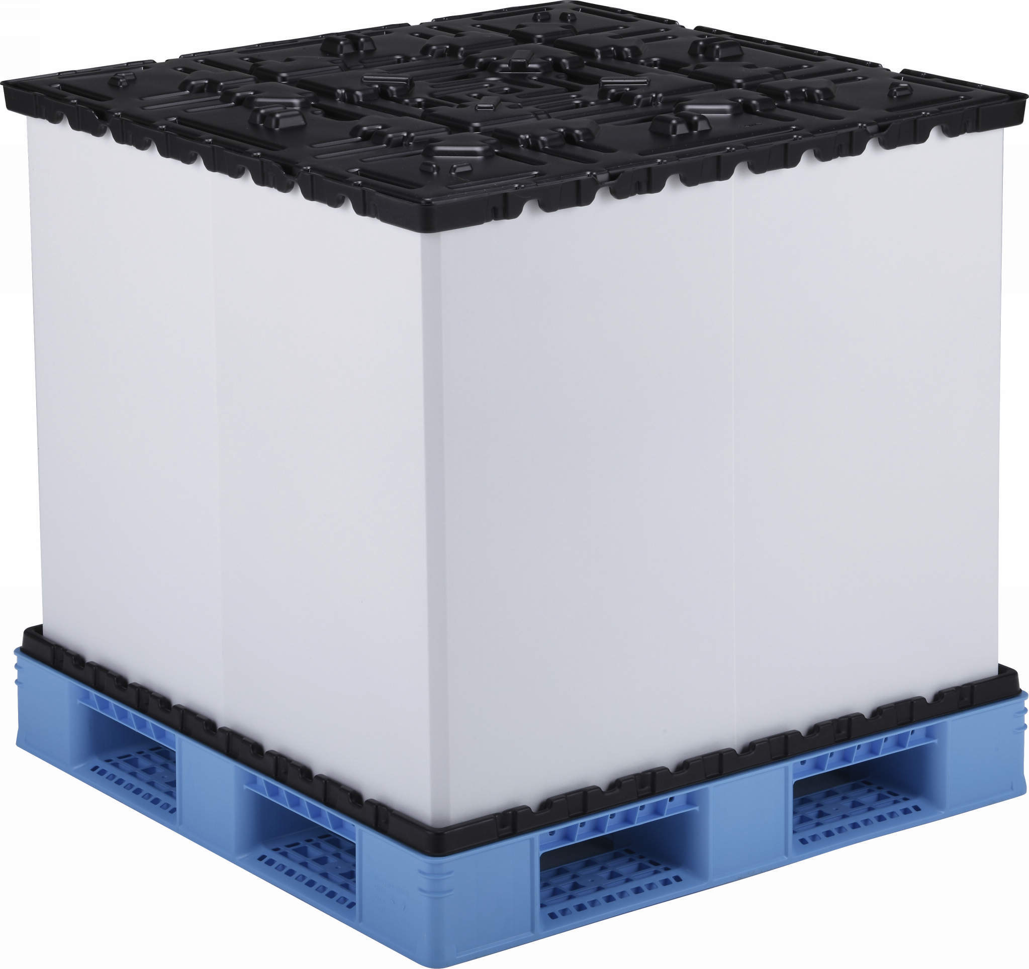 ・上下パレットと強化プラスチック段ボールによるリターナブルパレットボックスです。