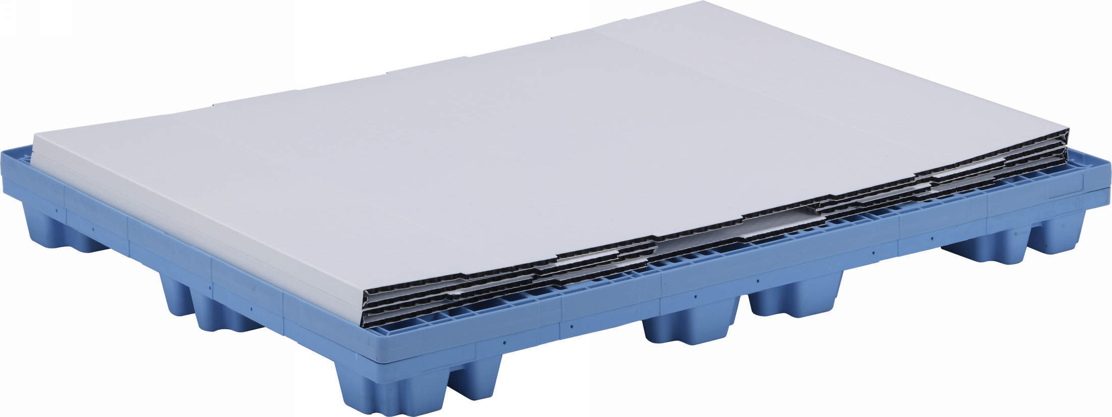 ・上下パレットは真空成形貼り合わせによる2層構造です。剛性及び耐衝撃性に優れます。