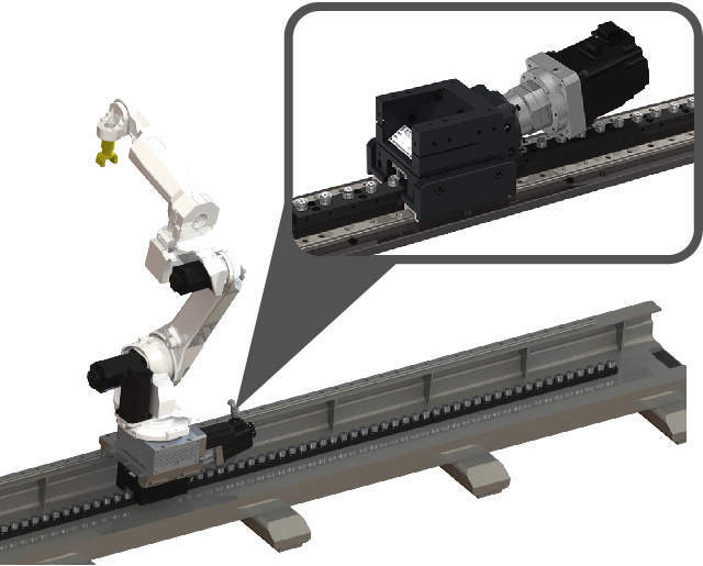・レールとライナーは高剛性ローラによる転がり伝達駆動ですのでロボットのような重量物を高速で搬送することができます。