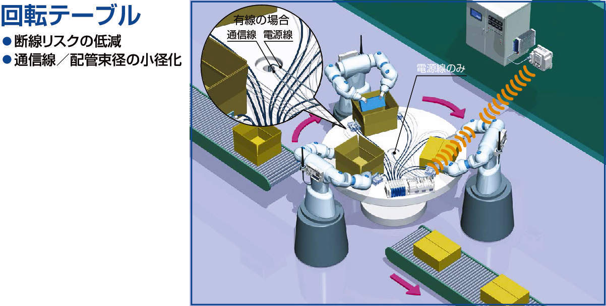 ● 通信ケーブル不要:配線工数・スペース・コスト削減、断線リスク低減