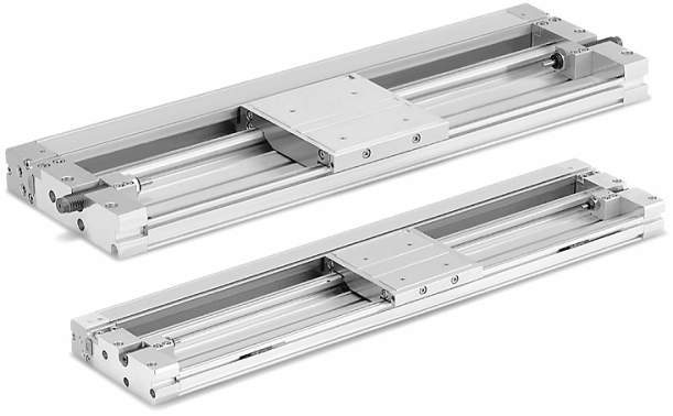 ・ガイド部と駆動部(シリンダ)を並列に配置することにより薄型化を図りました。(12mm~26mmの寸法低減を実現)