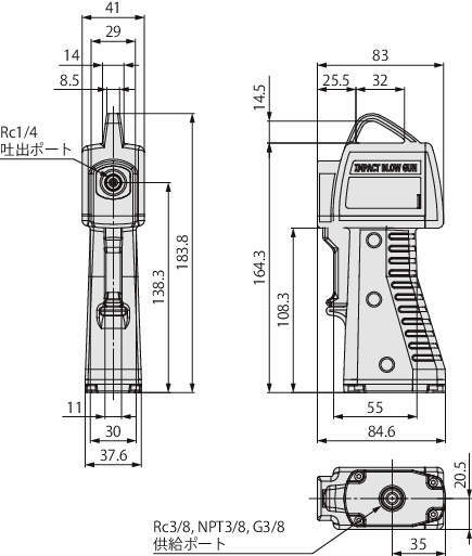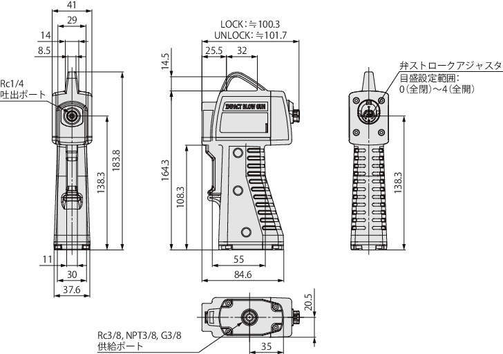 ・タンクをエアガンに内蔵しているため、一次側の圧力降下の栄影響を受けません。
