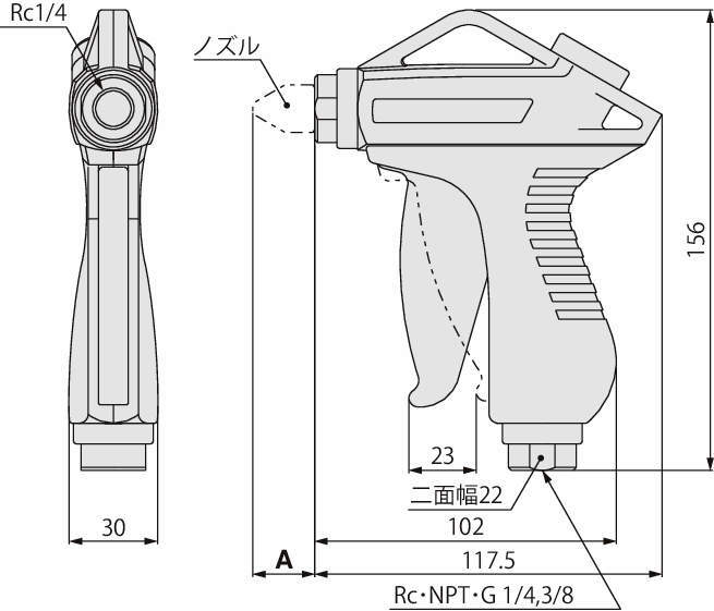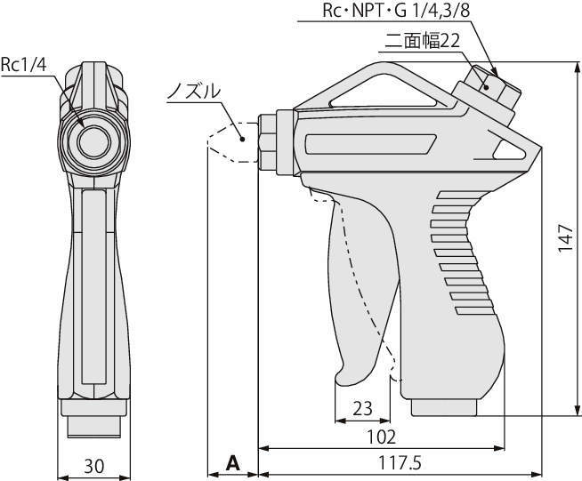 ・SMCのブローガンは有効断面積30mm2のタイプです。