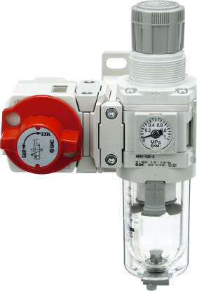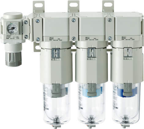・F.R.L.コンビネーションの入口側、出口側に使用することで、配管を取り外すことなく機器の着脱がで、メンテナンスが容易にできます。
