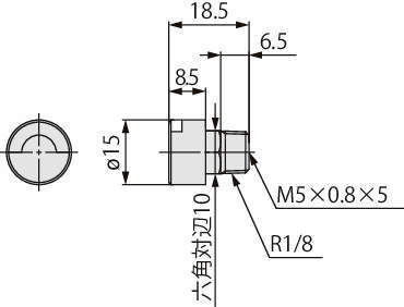 | G15-10-01 | G15 | 空気 | 背面ねじ | R1/8(めねじ M5×0.8) | 1.0MPa | 0~1.0MPa | ±5F.S.(フルスパン) | 0.01 |