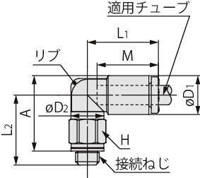 ※エルボユニオン、適用チューブ外径:φ6、接続ねじ:R1/8の場合
